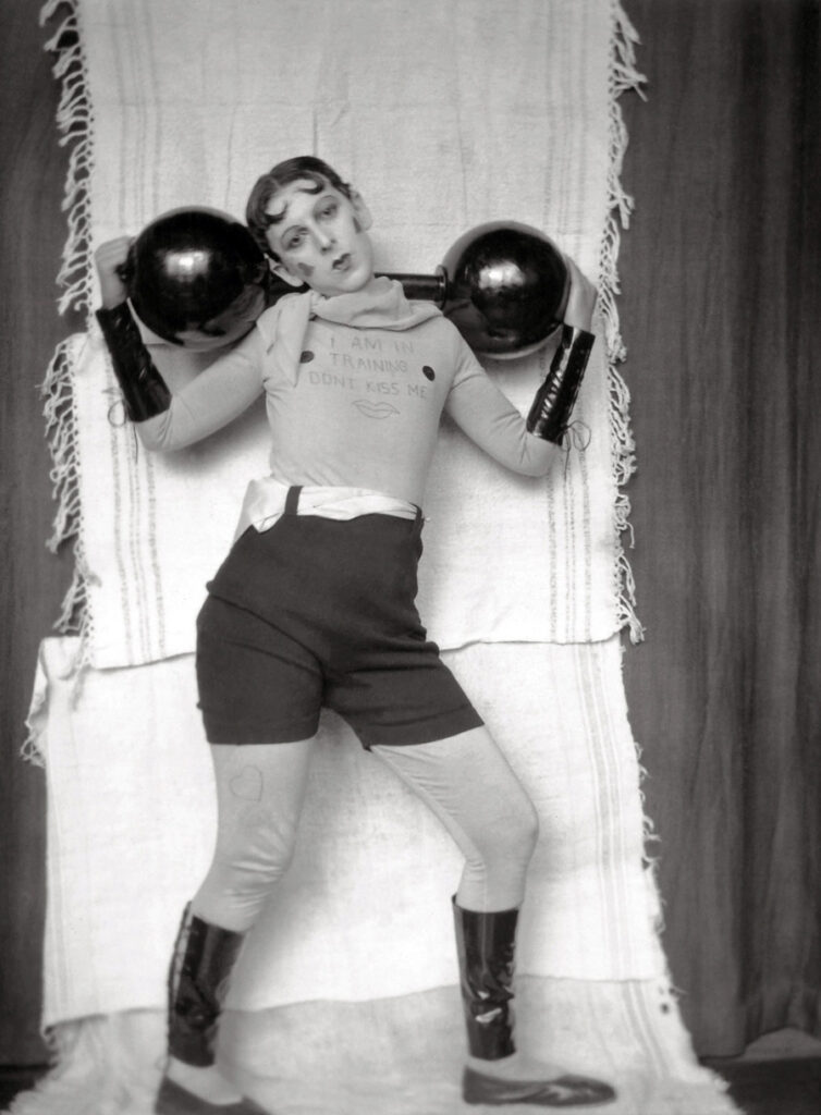 Jedným z najznámejších diel z tohto obdobia je séria fotografií z rokov 1927–1929, na ktorých Cahun vystupovali v podobe „feminizovaného“ siláka – s nalíčenými srdiečkami na lícach, priliehavým oblečením a tričkom s nápisom „I am in training, don’t kiss me“. Tieto autoportréty zámerne kombinovali znaky tradične spájané s mužskosťou aj ženskosťou a hrali sa so stereotypmi. Výsledná identita bola mnohovýznamová a zámerne nejednoznačná.