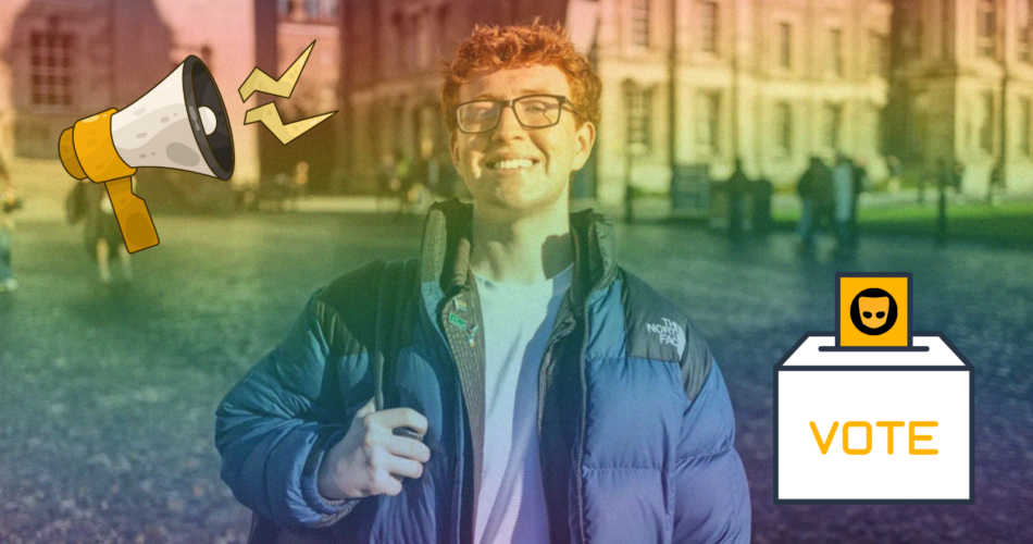 Počas volieb na predsedu tamojšej Študentskej únie (TCDSU), samosprávneho orgánu školy, sa jedným z kandidátov stal 19-ročný Callum O’Kelly. Popri tradičnej kampani na sociálnych sieťach, prostredníctvom letákov a debát, sa O’Kelly rozhodol pre nekonvenčný prístup, keď kampaňoval na gej zoznamovacej aplikácii Grindr.